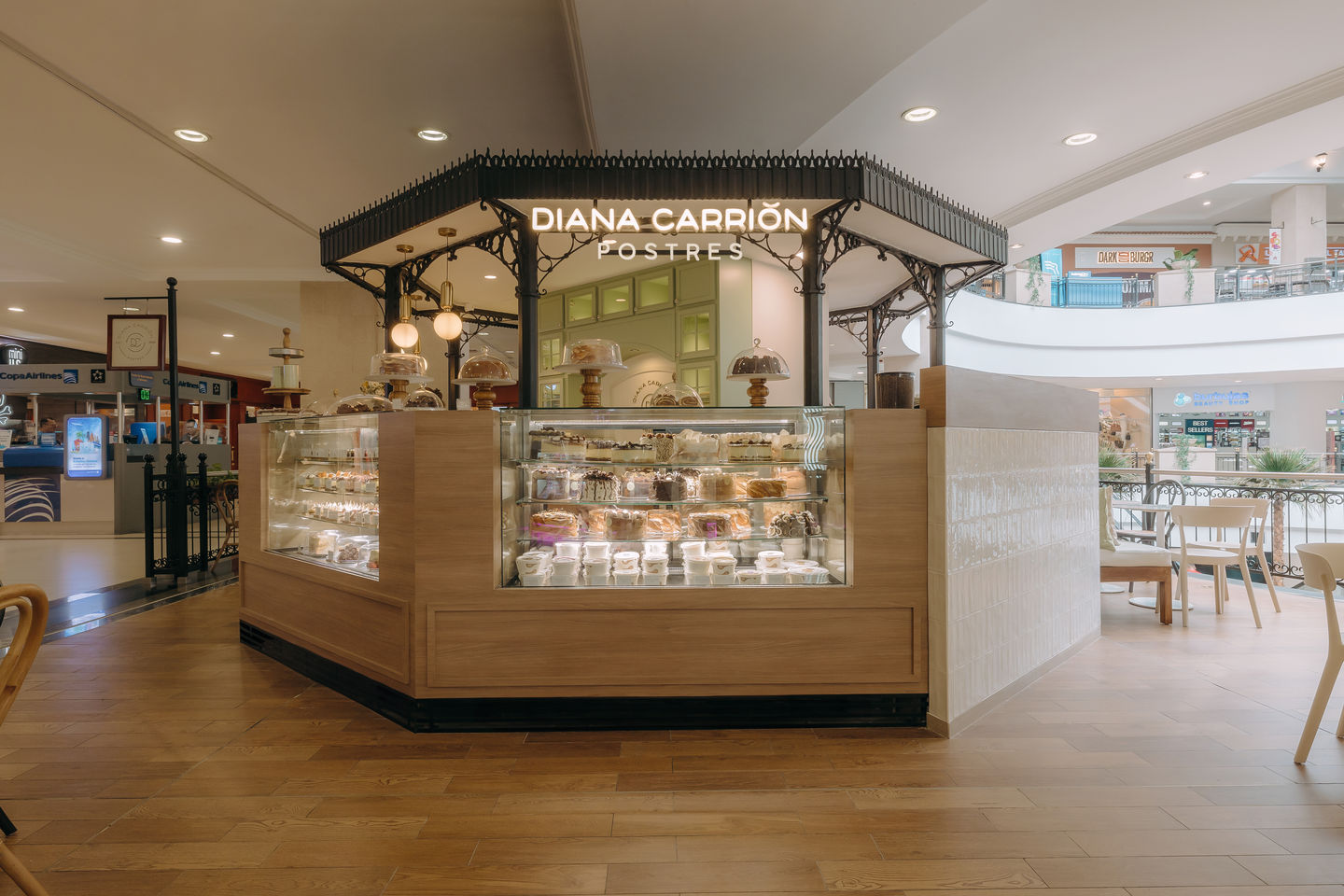 Located in one of the city’s busiest shopping malls, this concept store celebrates the essence of Diana Carrión, a beloved local pastry brand. The design brings together tradition and modernity, with elegant iron structures, warm wood finishes, and soft lighting that frame the display of artisanal desserts. Every detail was carefully crafted to create a space that invites customers to pause, indulge, and enjoy the sweet experience that defines Diana Carrión Postres.
